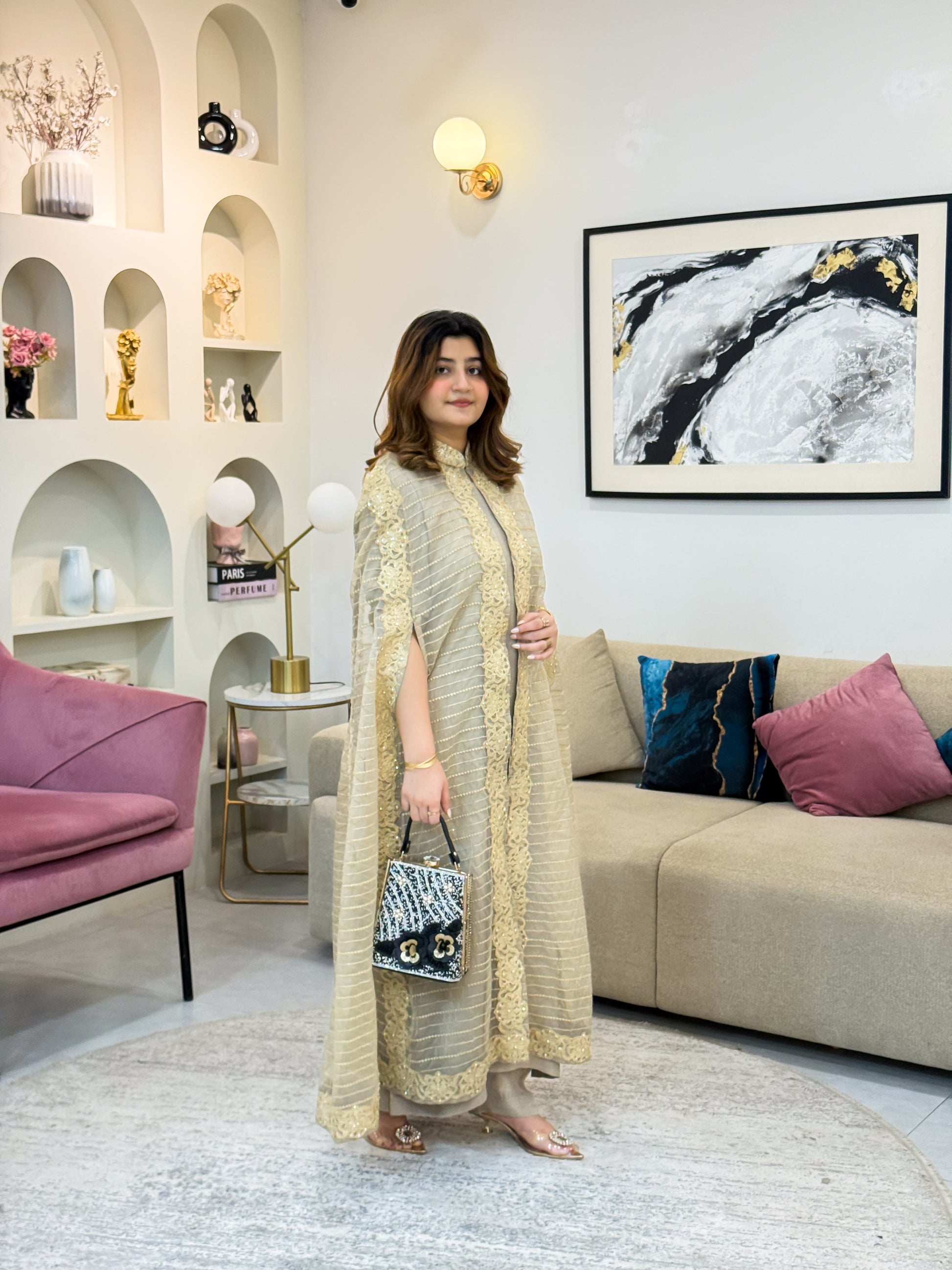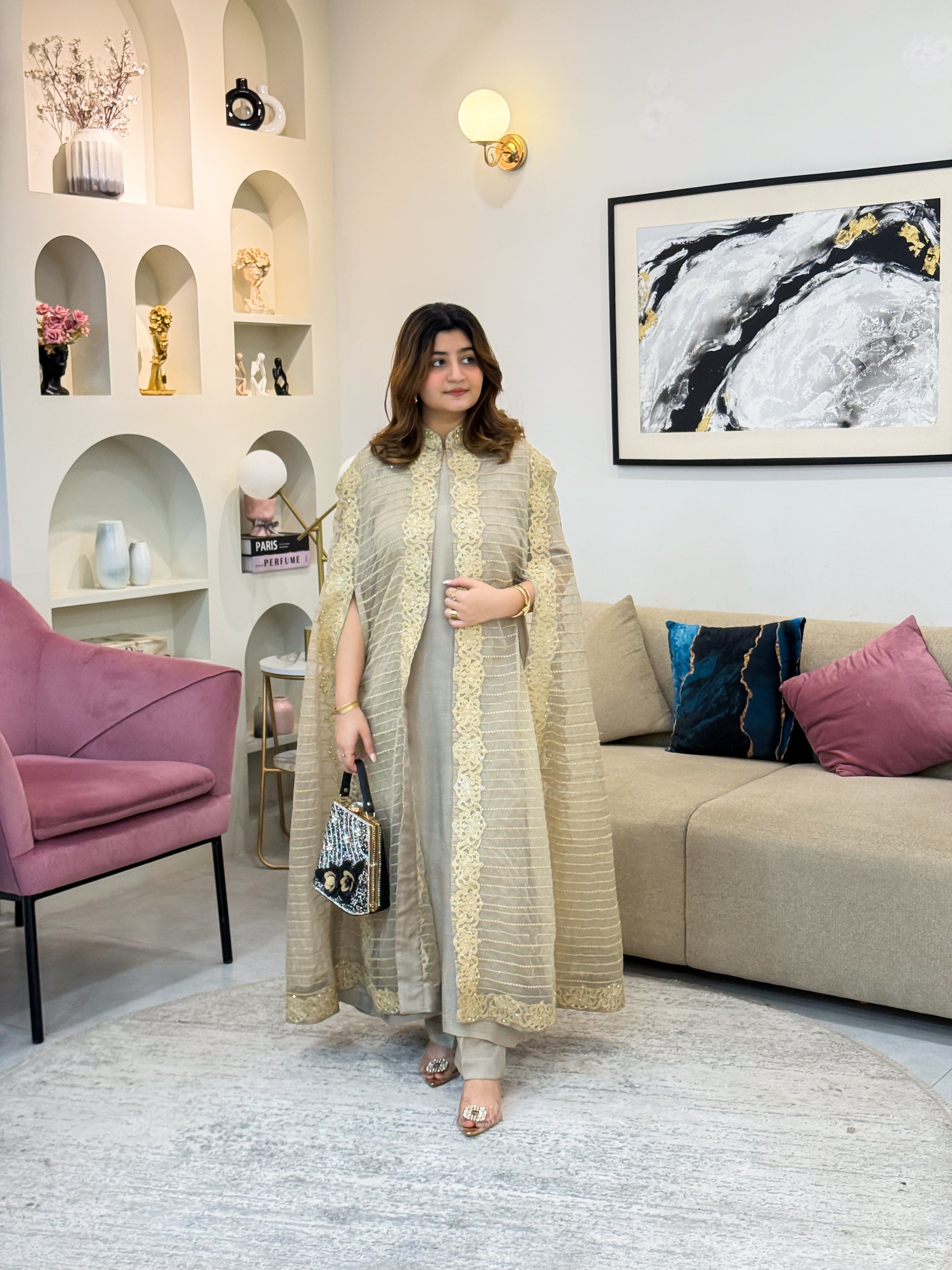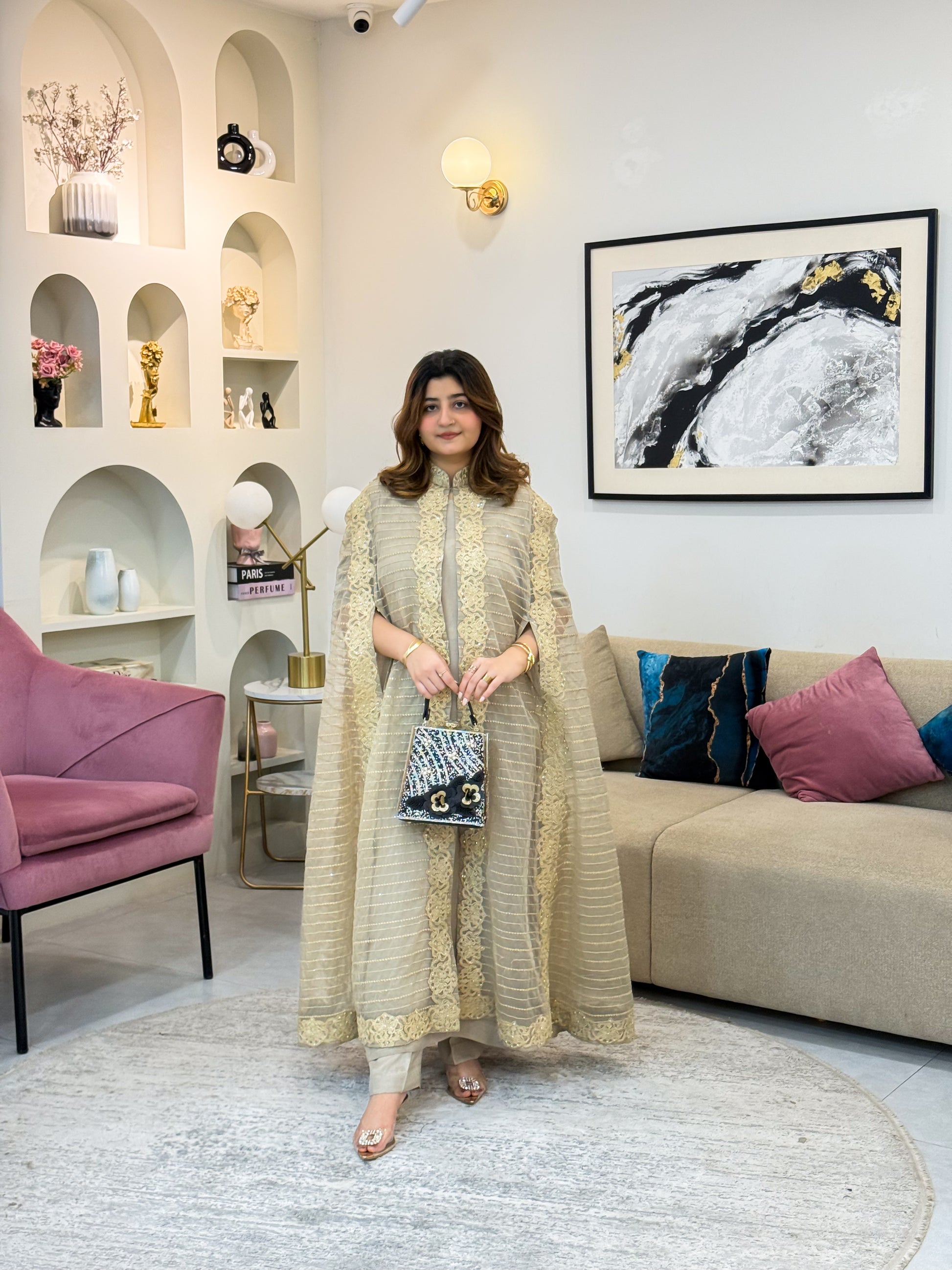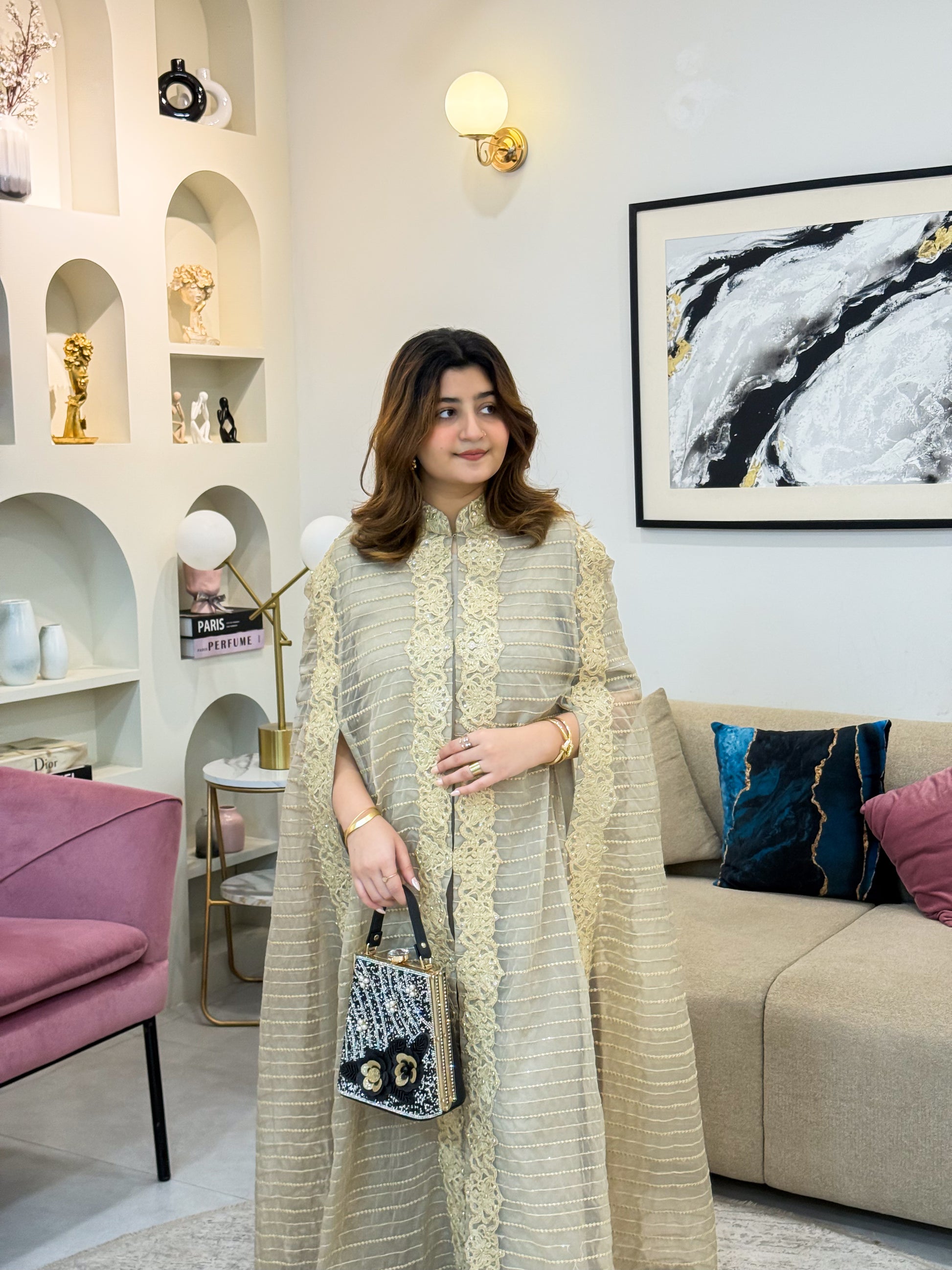 FABRIC: organza gown with formal trouser and inner Formal Collection)with inner attched