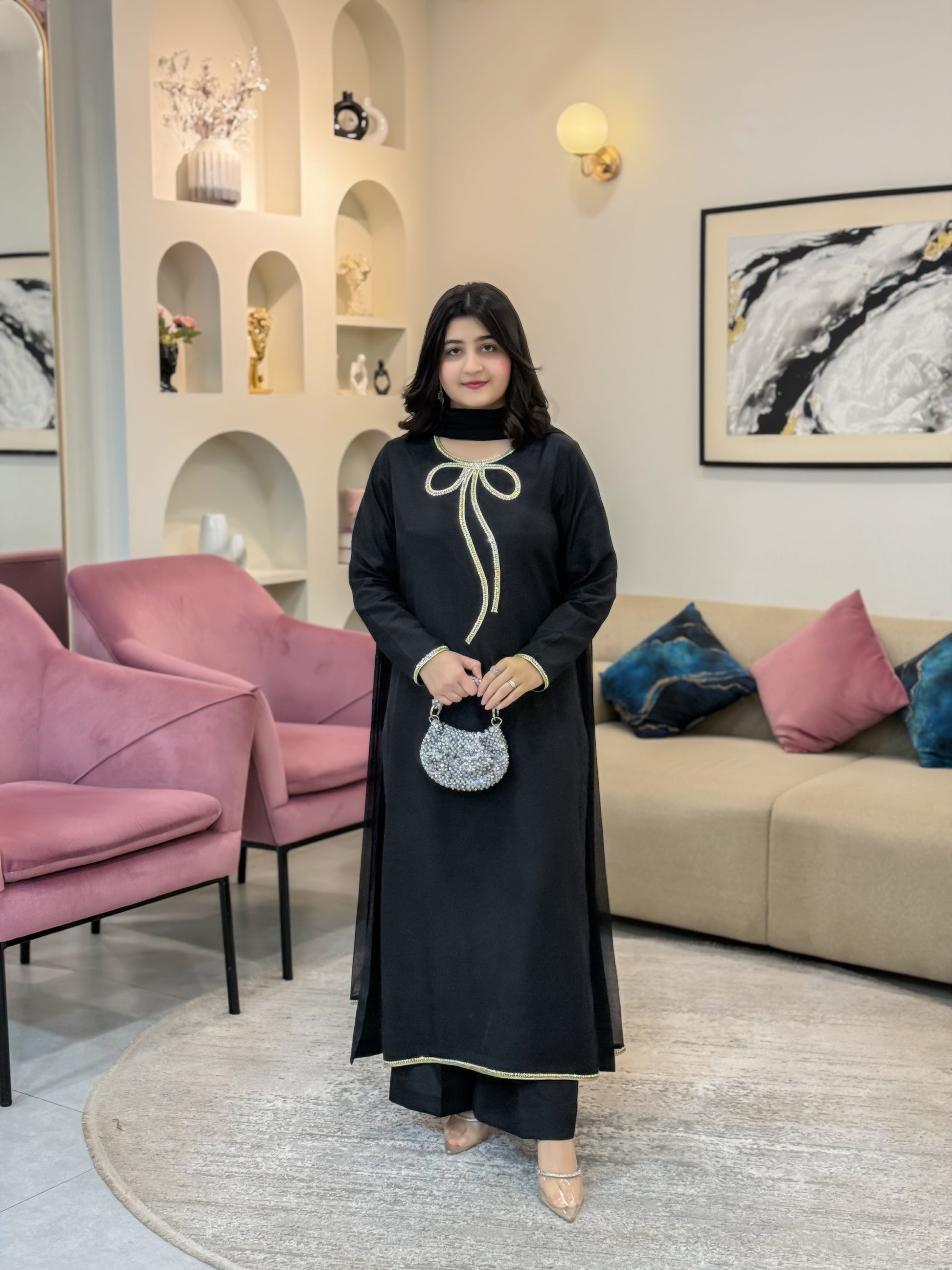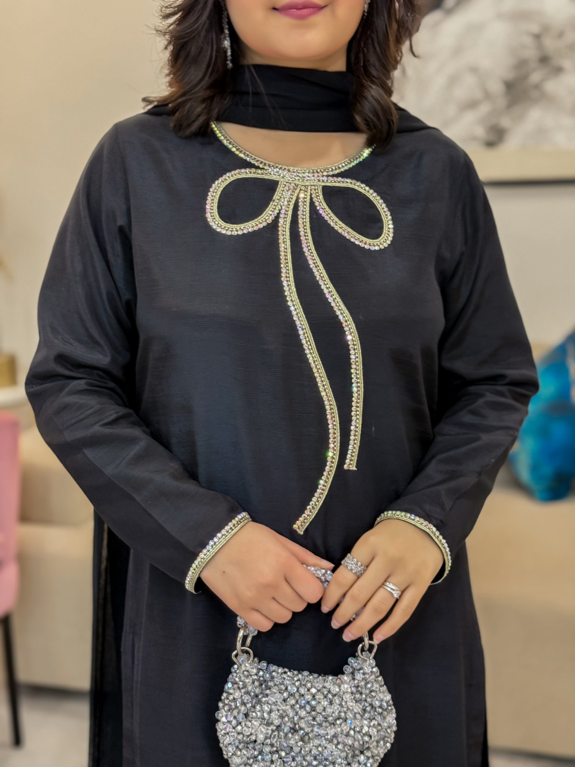Work Technique: lace work and pearl work on neck