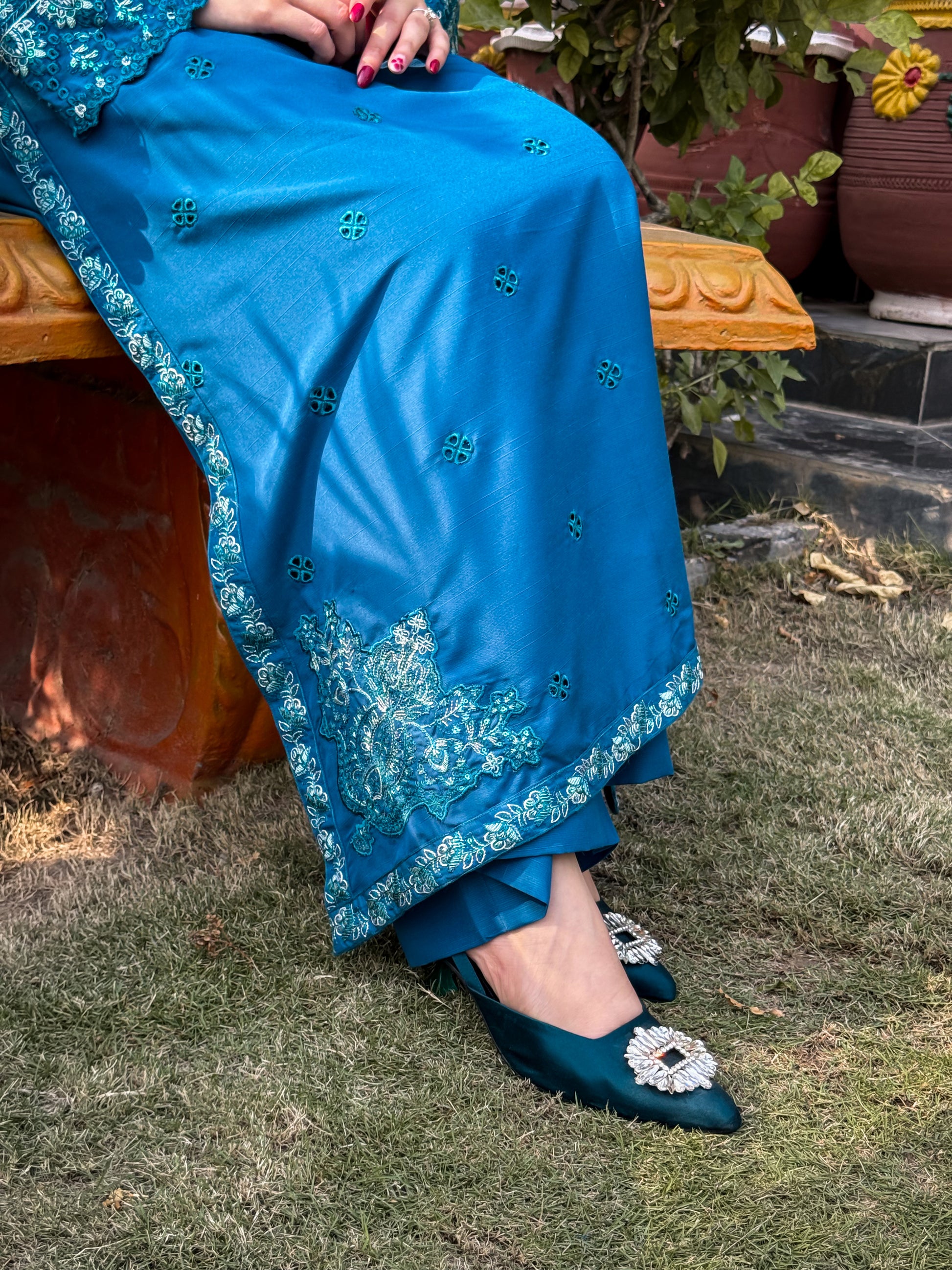 Work Technique: Embroidery shirt with chikenkari