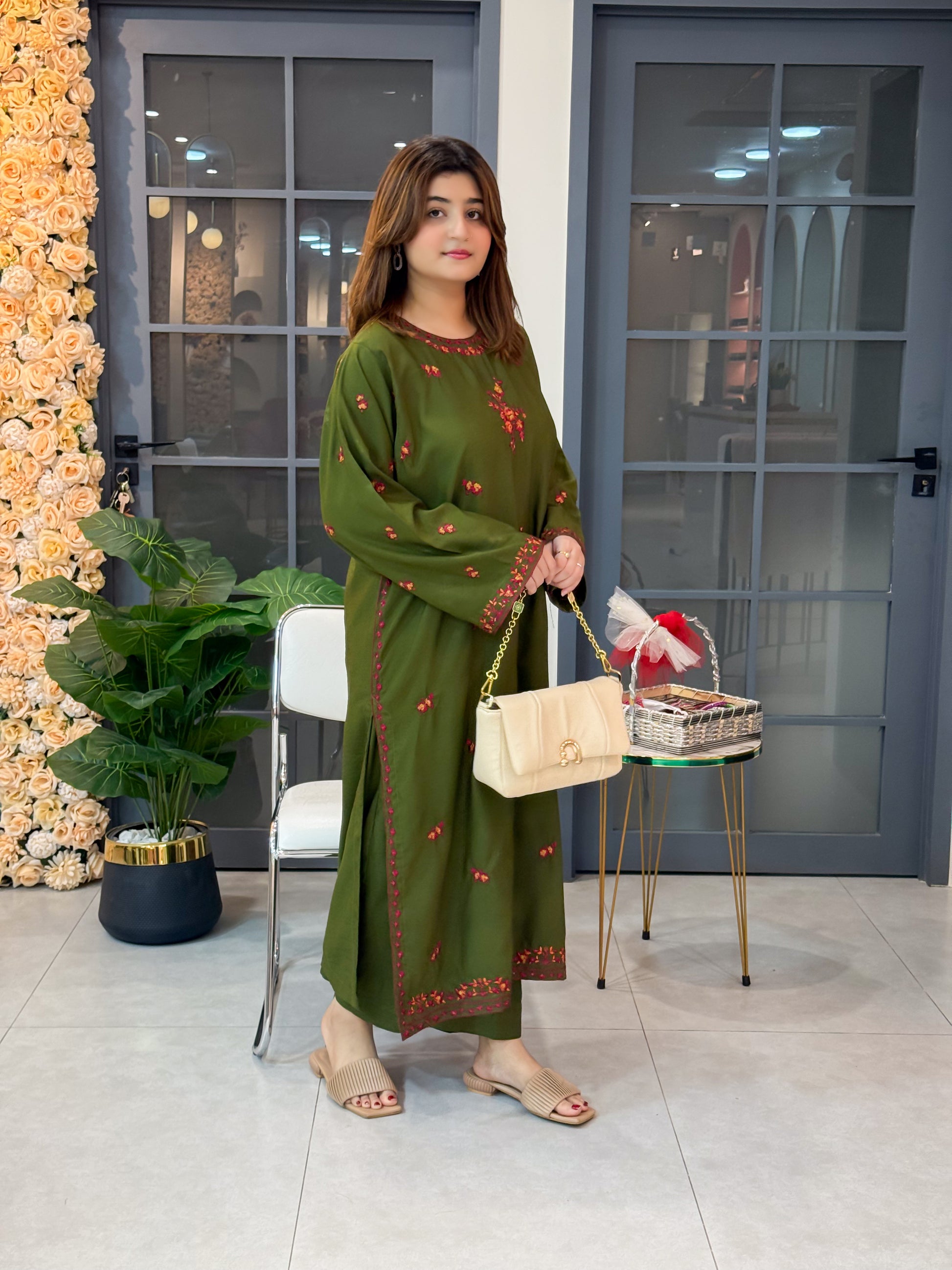 Note: Embroidered.